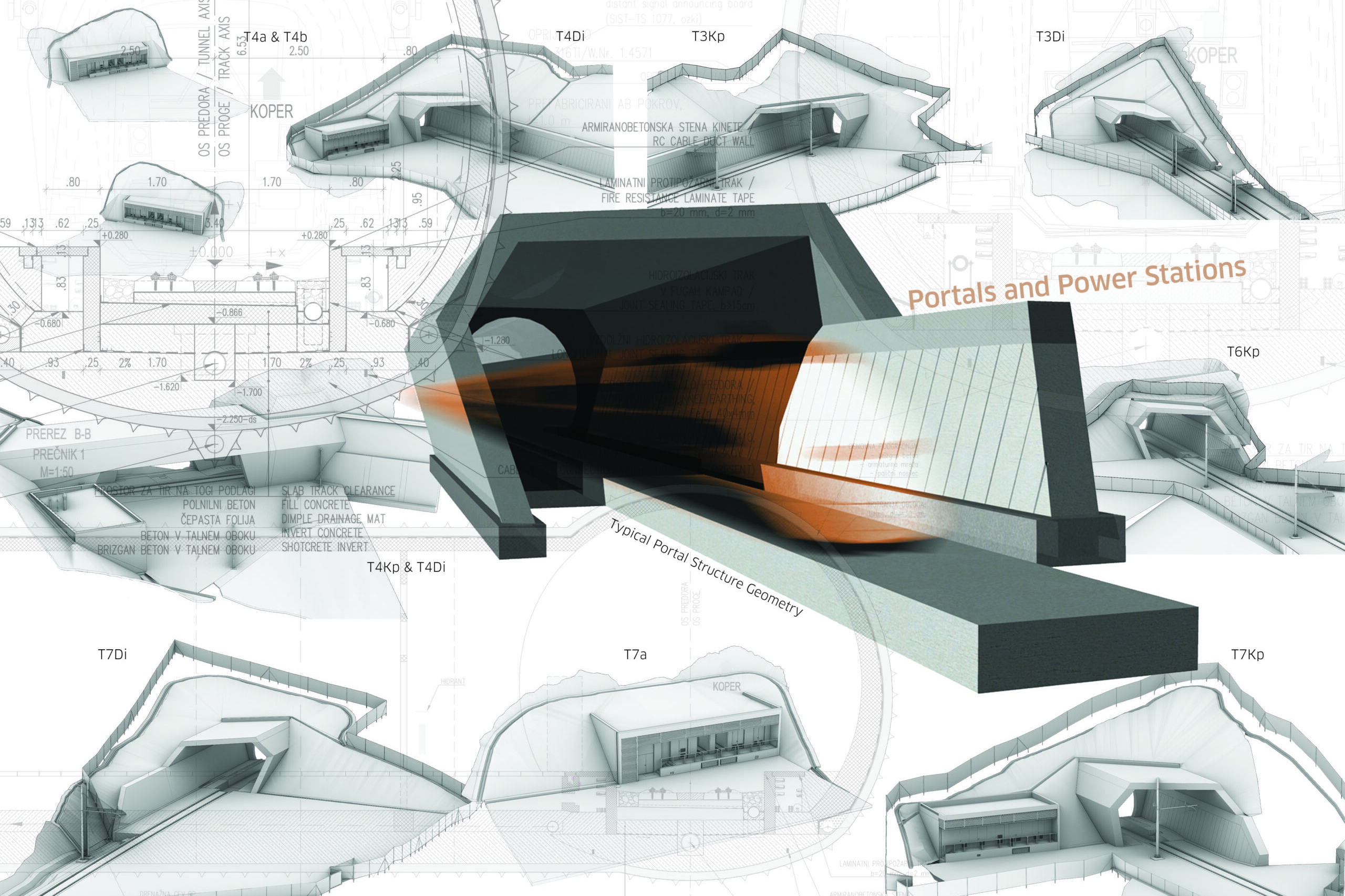 Na celotni povezavi je 37,4 km predorov s 17 portalnimi območji, 13 energetskimi objekti, številnimi podpornimi in opornimi konstrukcijami, prepusti in ostalimi spremljajočimi objekti.