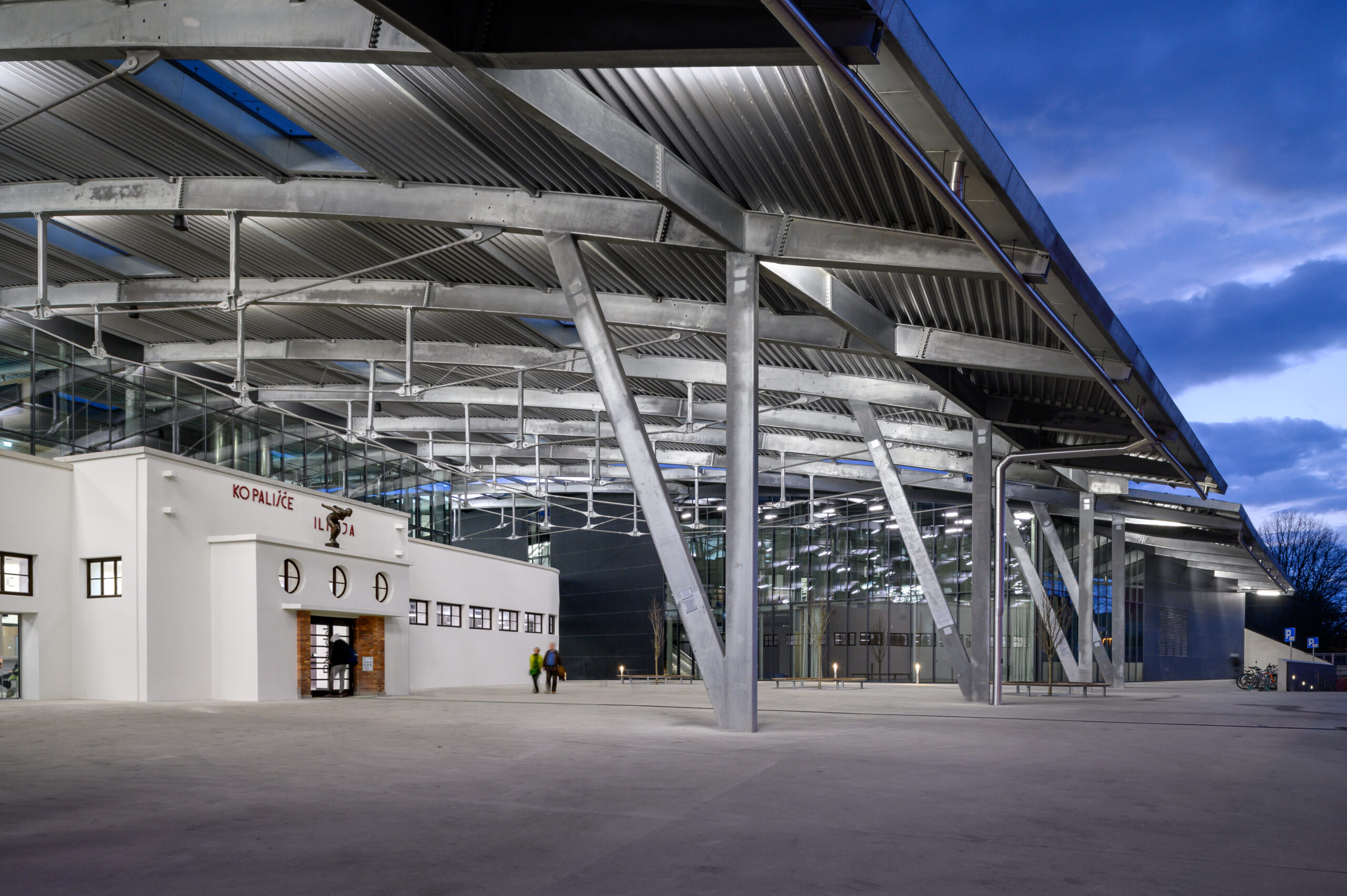 The project Sports City Ilirija is in a continuous conversation with Ilirija’s local past and the visionary ambitions for its future. When completed, it will be an almost zero-energy sports complex, naturally lit through partially transparent roof elements and a completely see-through facade that will preserve Bloudek’s original entrance and replace it with a replica of the stolen statue of the ‘female swimmer’ by France Gorše.