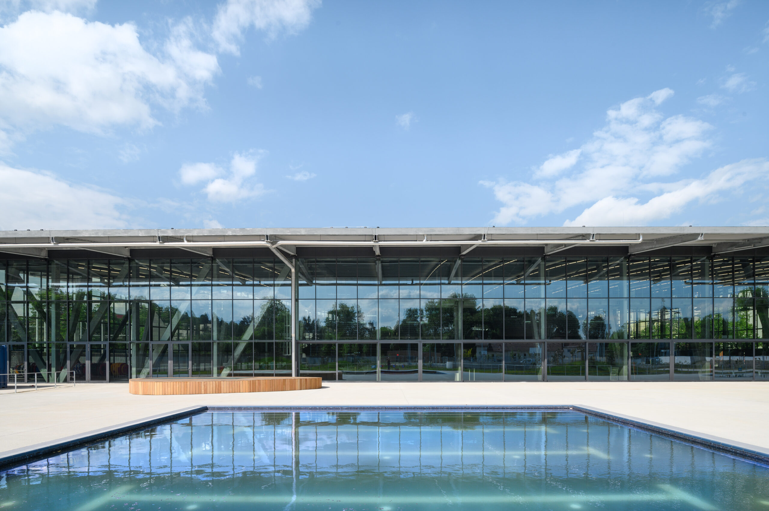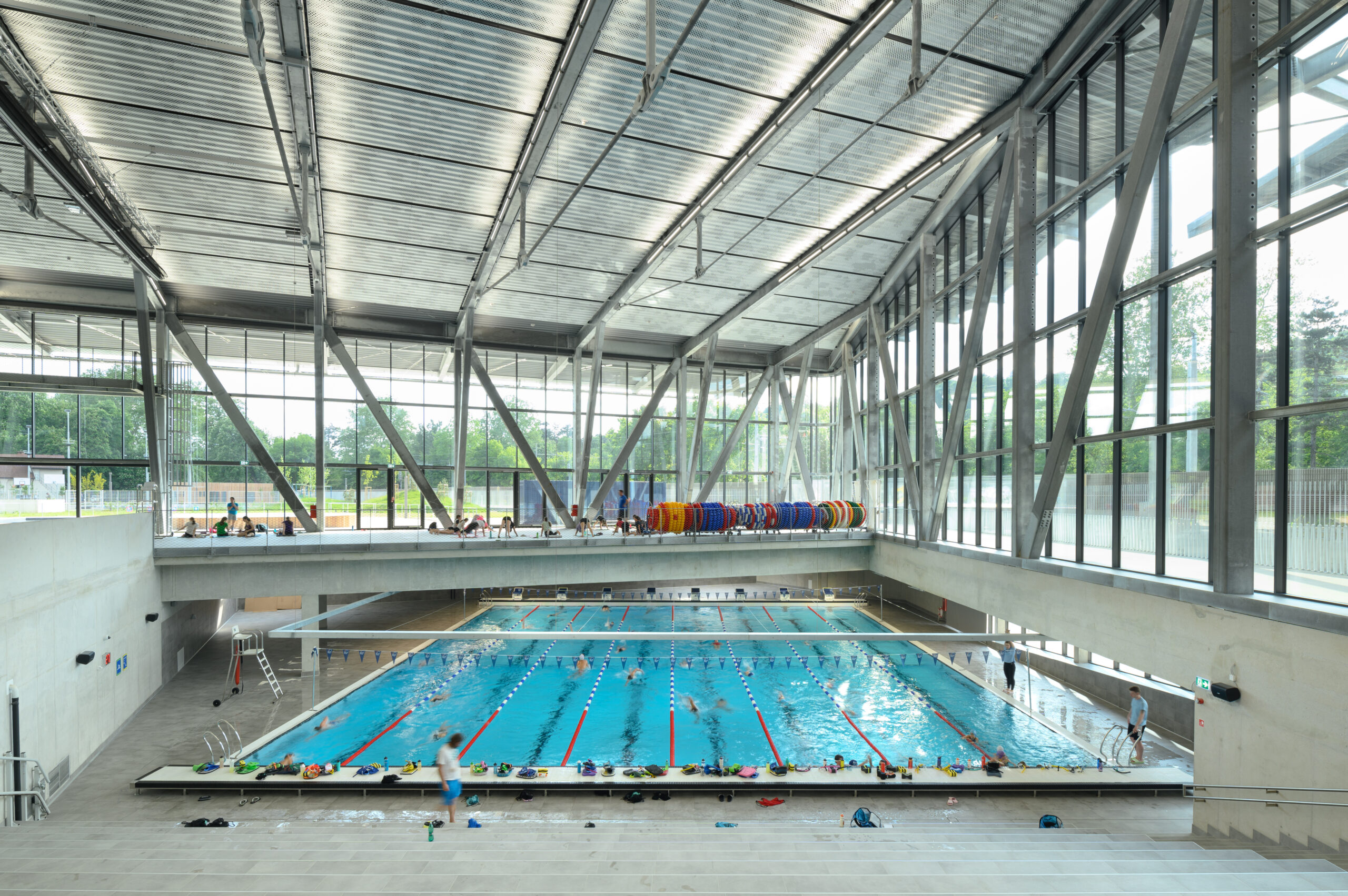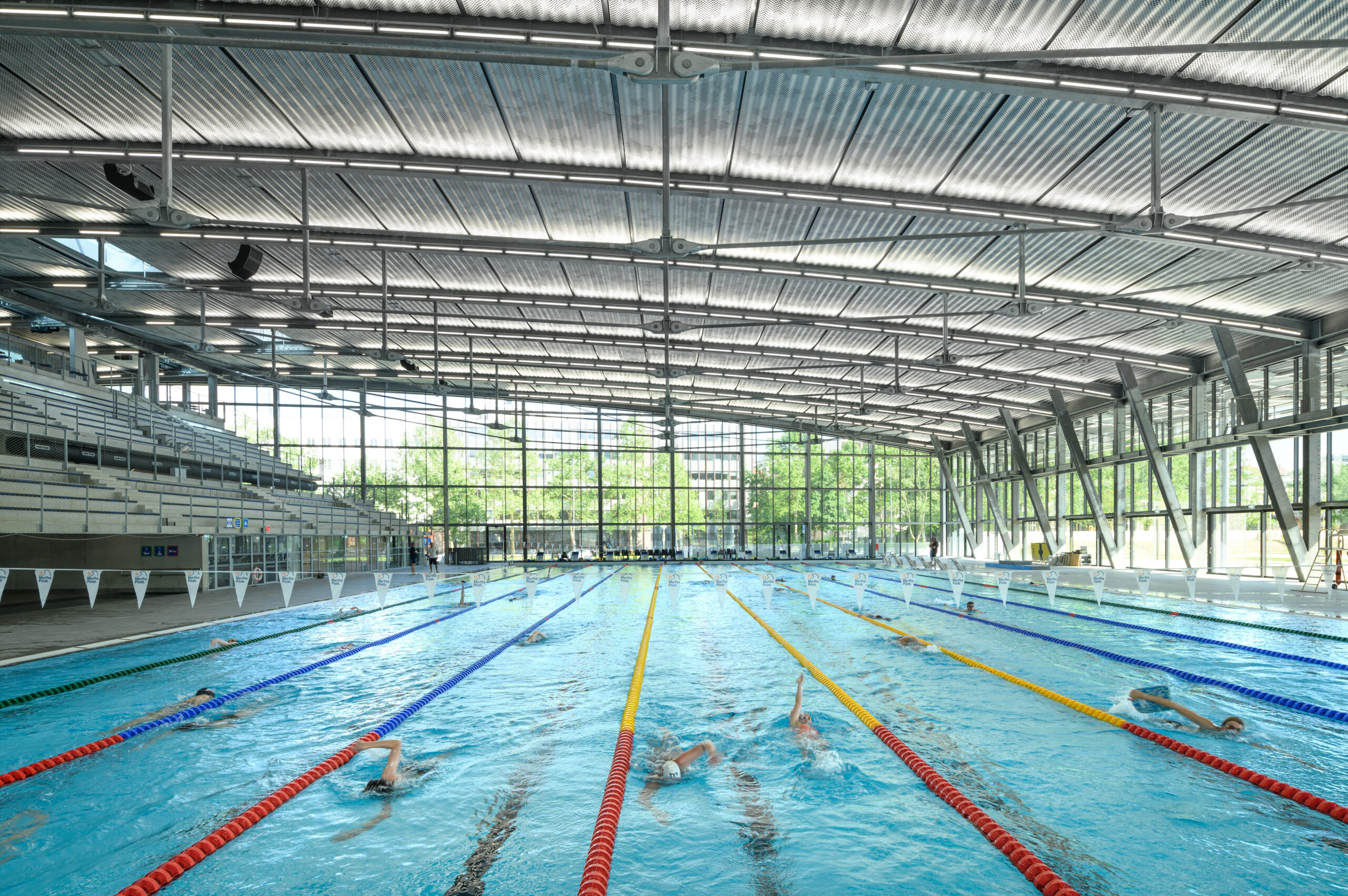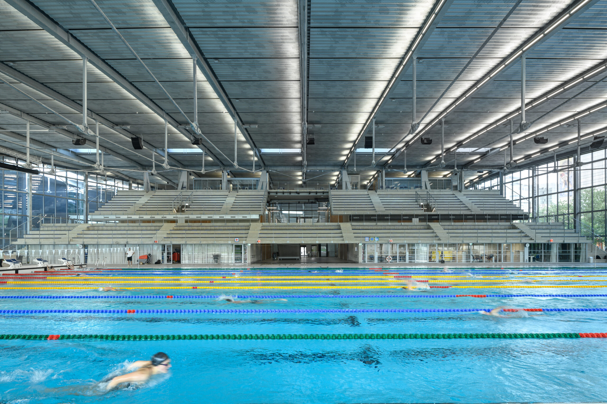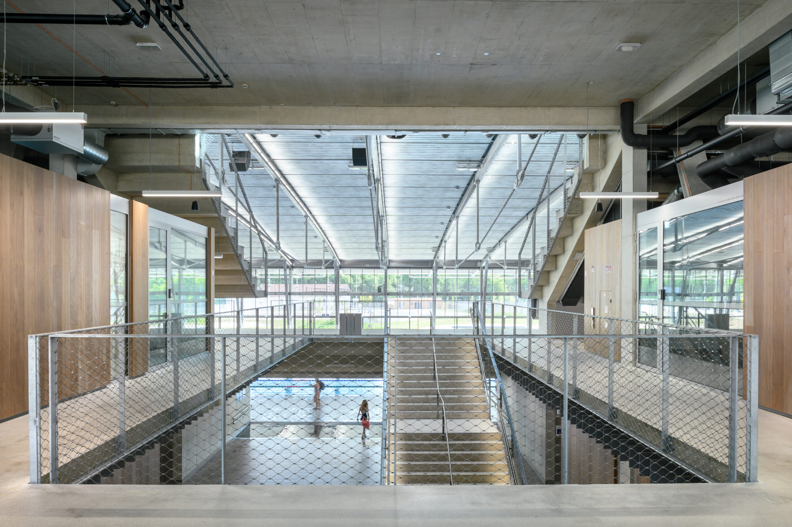 The entire complex will be powered by geothermal energy, which is transformed into heating and cooling energy via heat pumps and exchangers. Almost all the energy needed to operate the swimming pool will be obtained from reversible sources. Ilirija’s roof will also boast a field of solar panels supplying the complex with renewable electricity.