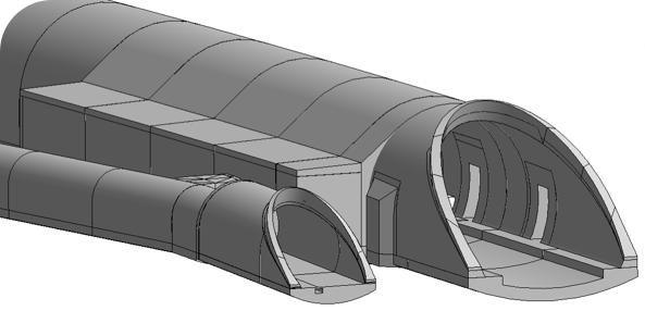 Projekt vsebuje glavno cev z dvema odstavnima nišama ter osrednjo pogonsko centralo s kavernami za prezračevanje in elektro opremo, reševalni rov s prečniki, pokrit vkop sever s pogonsko centralo, pokrit vkop jug ter pogonsko centralo na jugu.